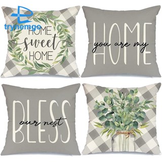 Bộ Vỏ Gối 4 18X18 Họa Tiết Lá Bạch Đàn / Kẻ Sọc Độc Đáo Trang Trí Nhà Cửa
