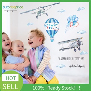 Miếng Dán Tường Trang Trí Hình Máy Bay Màu Nước Vẽ Tay Tháo Được