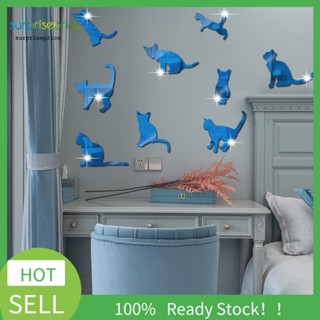 Bộ 9 Miếng Dán Tường Tráng Gương Họa Tiết Hoạt Hình Mèo Sáng Tạo Trang Trí Nhà Cửa