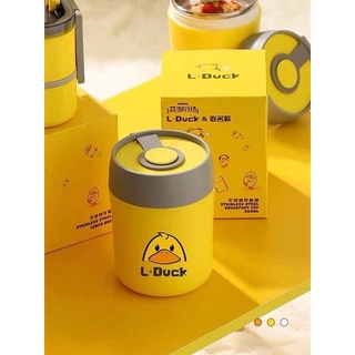 Cốc đựng canh bình ủ cháo inox 450ml L-Duck loại mới giữ nhiệt cực lâu tặng kèm muỗng an toàn vệ sinh