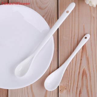 Muỗng Cà Phê / Trà / Món Tráng Miệng Bằng Sứ Tay Cầm Dài Màu Trắng