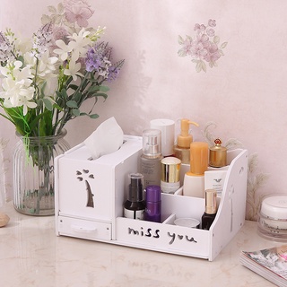 Kệ mỹ phẩm gỗ để bàn in chữ miss you kèm hộp đựng khăn giấy kích thước 28x19x14cm