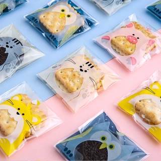 100 túi nhựa họa tiết hoạt hình dễ thương đựng bánh quy đa năng