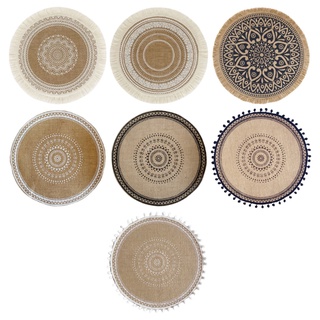 Miếng lót ly dáng tròn dệt vải kiểu tua rua phong cách Boho Mandala đa năng độc đáo