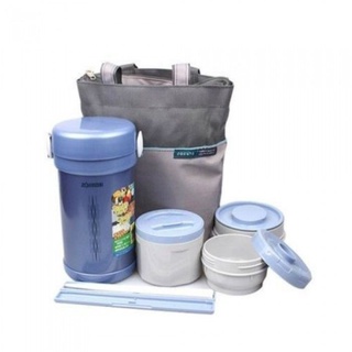 Hộp cơm giữ nhiệt Zojirushi SL-NC09 - 3 ngăn - 2 màu xanh, inox, hàng chính hãng