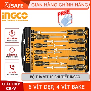 Bộ 10 tua vít INGCO HKSD1028 Bộ tuốc nơ vít 10 chi tiết chất liệu CR-V, đuôi tròn, đa dạng size - Chính hãng [XSAFE]