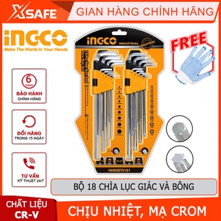 Bộ 18 chìa lục giác đầu bằng và bông INGCO HHKSET0181 chất liệu thép CR-V cứng cáp, độ bền cao - Chính hãng [XSAFE]