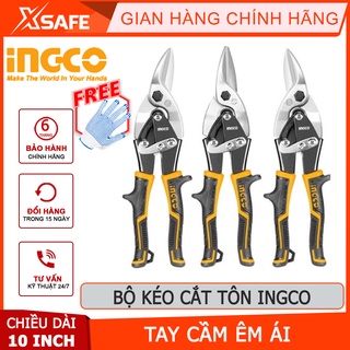 Bộ kéo cắt tôn INGCO HTSNK0110 3 chi tiết, bộ 3 kéo cắt tôn dài 250mm (10''), thép không gỉ độ cứng cao - [XSAFE]