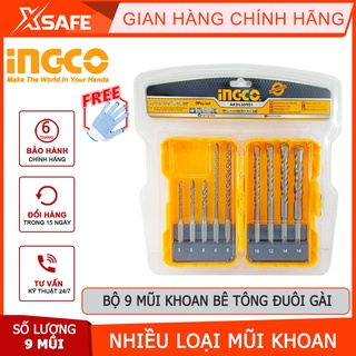 Bộ 9 mũi khoan bê tông đuôi gài INGCO AKDL30901 Bộ mũi khoan 9 chi tiết SDS Plus, đóng gói bằng vỉ kép - [XSAFE]