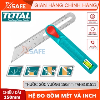 Thước góc vuông 150mm TOTAL TAHS181511, có mực nước thủy, chiều rộng lưỡi thước 28mm, thước thủy đánh dấu góc chính xác