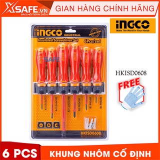 Bộ 6 tua vít cách điện 1000V INGCO HKISD0608 tay cầm mới Bộ tuốc nơ vít đa năng chui tròn cách điện - Chính hãng