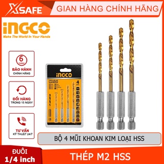 Bộ 4 mũi khoan kim loại HSS INGCO AKD1402 đuôi lục giác 1/4 inch, thép M2 HSS chất lượng, làm bóng mũi bằng Tianium