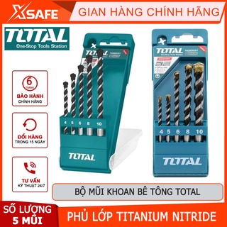 Bộ 5 mũi khoan bê tông TOTAL TAC190501 5 mũi khoan đuôi khe phủ lớp titanium chống mài mòn, gỉ sét, chịu lực chịu nhiệt