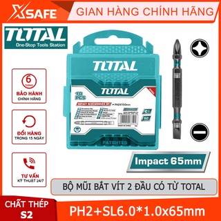 Bộ mũi bắt vít 2 đầu có từ TOTAL TACIM16HL133 | bộ 10 mũi siết vít PH2+SL6.0*1.0x65mm thép công nghiệp S2 tháo