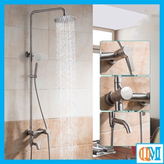 Bộ sen cây tắm đứng inox mờ nóng lạnh cao cấp - bát sen tắm đứng, vòi sen inox tròn dẹt không gỉ - QM.BSC004