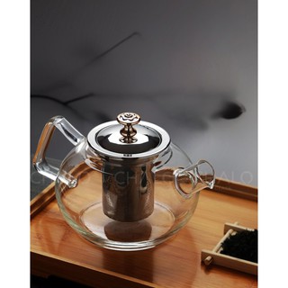 Bình trà thủy tinh chịu nhiệt dáng tròn nắp và lọc trà inox 1000ml - GPH22
