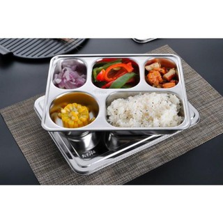 Khay inox 5 ngăn , khay phần Hàn Quốc inox 304 , sử dụng cho quán cơm, trường học, công nhân, bệnh viện