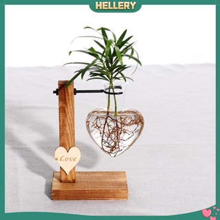 Lọ hoa thủy tinh hình trái tim kèm giá đỡ gỗ trang trí bàn làm việc
