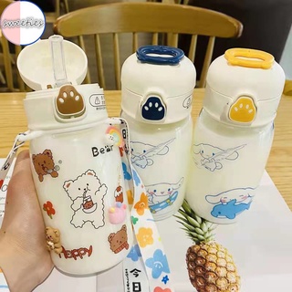 Bình Nước 480ml Trong Suốt Chống Rò Rỉ Kèm Ống Hút Họa Tiết Hoạt Hình Dễ Thương Cho Học Sinh