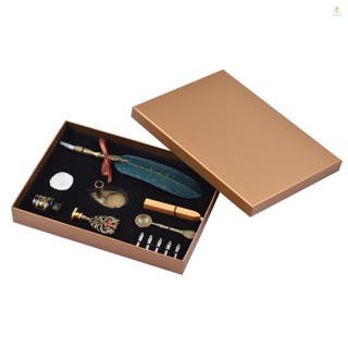Bộ Bút Mực Thư Pháp Và Hộp Quà Tặng + Mực In Lông Vũ Cổ Điển Kèm 10 Ngòi Thay Thế
