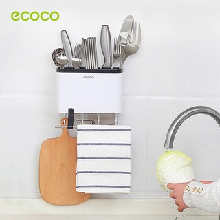 kệ để muỗng đũa Ecoco cao cấp , Hộp để muỗng có thanh treo khăn thông minh tiện dụng