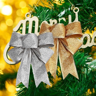 Bộ 12 Nơ Kim Tuyến Màu Vàng / Bạc Trang Trí Cây Thông Giáng Sinh