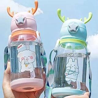 Bình Nước Nhựa Trong Suốt Kèm Ống Hút Màu Hồng Xinh Xắn Dành Cho Bé Gái