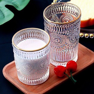 Cốc thuỷ tinh, ly thủy tinh chịu nhiệt viền vàng khắc nổi hoa hướng dương