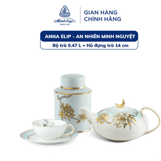 Bộ Ấm, Chén Trà Anna 0.47L Viền Chỉ Vàng Và Ly Sứ Dưỡng Sinh Minh Long