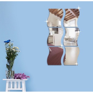 Set 6 Miếng Dán Tường Tráng Gương 3d Hình Gợn Sóng Độc Đáo Trang Trí Nhà Cửa Diy