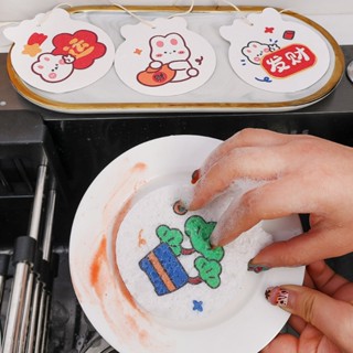 [Phong Cách Ngẫu Nhiên] Miếng Bọt Biển Rửa Chén Bằng Bột Gỗ Nén Hình Thỏ Hoạt Hình Đa Năng Siêu Thấm Hút Dùng Trong Nhà Bếp