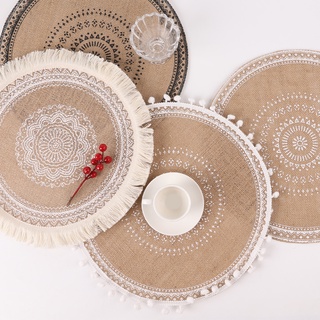 Tấm lót bàn ăn bằng cotton lanh chống trượt phong cách Bohemian đơn giản