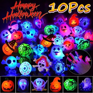 Set 10 Nhẫn Halloween Phát Sáng Hình Đầu Lâu / Bí Ngô Dễ Thương Cho Bé