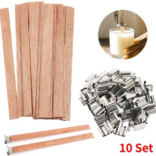 Set 10 Dây Bấc Đèn Cầy Bằng Gỗ Thân Thiện Với Môi Trường Kèm Đế / Đế Hỗ Trợ Làm Nến