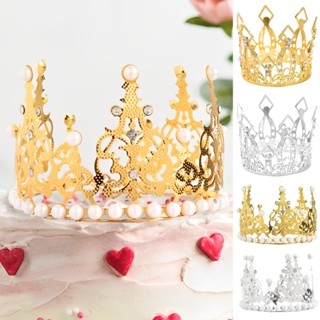 Phụ Kiện Trang Trí Bánh Kem Hình Vương Miện Mini Bằng Kim Loại Đính Ngọc Trai Sáng Tạo