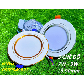 Đèn Led Âm Trần 3 Chế Độ Màu 7W 9W Viền Vàng/Bạc Đế Đúc, BH 12 Tháng Đổi Mới