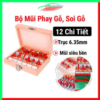 Bộ mũi phay gỗ, soi gỗ 12 chi tiết 6.35mm