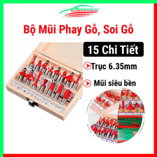 Bộ mũi phay gỗ, soi gỗ 15 chi tiết 6.35mm