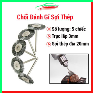 Bộ 5 chổi đánh gỉ trục 3mm sợi thép - chổi đĩa đường kính 20mm