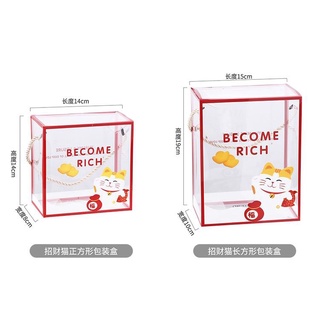 1 Hộp Nhựa Trong Quai Xách ~ Mèo Become Rich (14*14*8cm) - 1 hộp