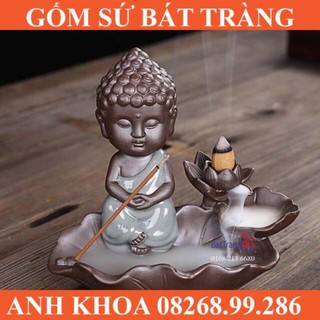 Tượng đốt trầm Phật toạ sen - Gốm sứ Bát Tràng Anh Khoa