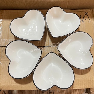 Bát Đĩa Decor Chén Dĩa Dễ Thương Đĩa Sứ Đĩa tim viền đen đựng và trang trí đồ ăn siêu đẹp