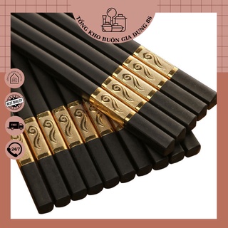 Bộ 10 Đôi Đũa Hợp Kim Mạ Vàng Có Hộp Đựng Cao Cấp