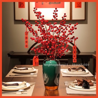 1 Cành đào đông giả 80cm 12 nhánh trang trí nhà cửa