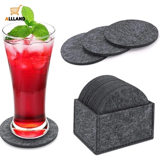 Set 8 Miếng Lót Ly Chén Hình Tròn Chịu Nhiệt Tốt Kèm Hộp Đựng