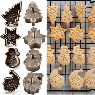 4 Khuôn làm bánh quy bằng nhựa hình cây thông / người tuyết / ông già noel 3D