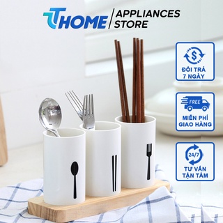 Bộ 3 ống cắm đũa bằng nhựa đế gỗ tiện dụng, ống cắm muỗng đũa cao cấp TT- HOME