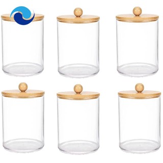 Bộ 6 Hộp Nhựa Trong Suốt Có Nắp Tre Đựng Tăm Bông Tiện Lợi