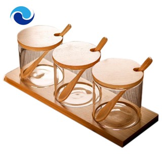 Set 3 Hũ Đựng Gia Vị Trong Suốt Có Nắp Đậy Và Muỗng Tiện Dụng Cho Nhà Bếp