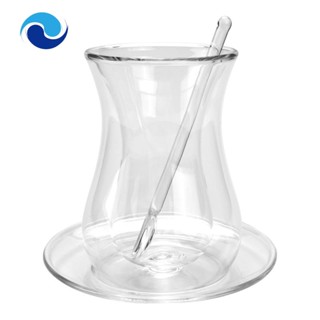 Bộ Cốc Uống Trà / Cà Phê Bằng Thủy Tinh Trong Suốt Hai Lớp Cách Nhiệt Kèm Đĩa Và Muỗng